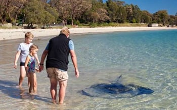 The park is home to resident wildlife - native birds, possums, kangaroos, and even stingrays off the local boat ramp.